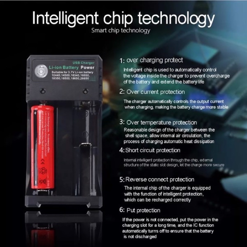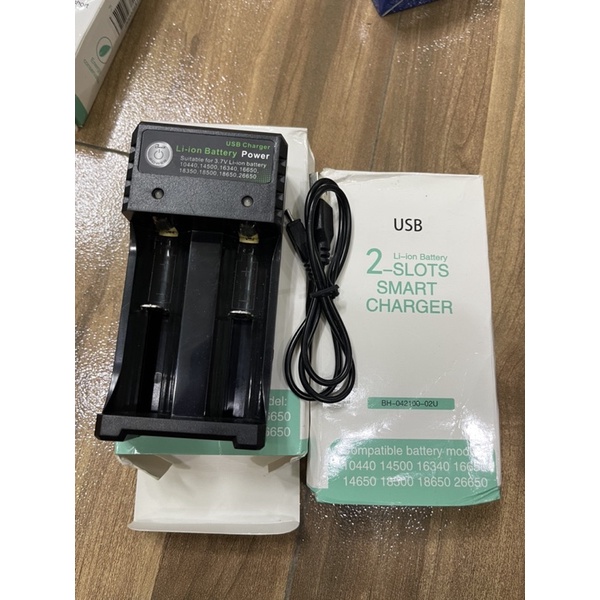 - Có thể sạc 2 pin cùng 1 lúc. Dùng được cho các loại pin Li-on: 18650 26650 18350 16340 14500 18500, v.v.