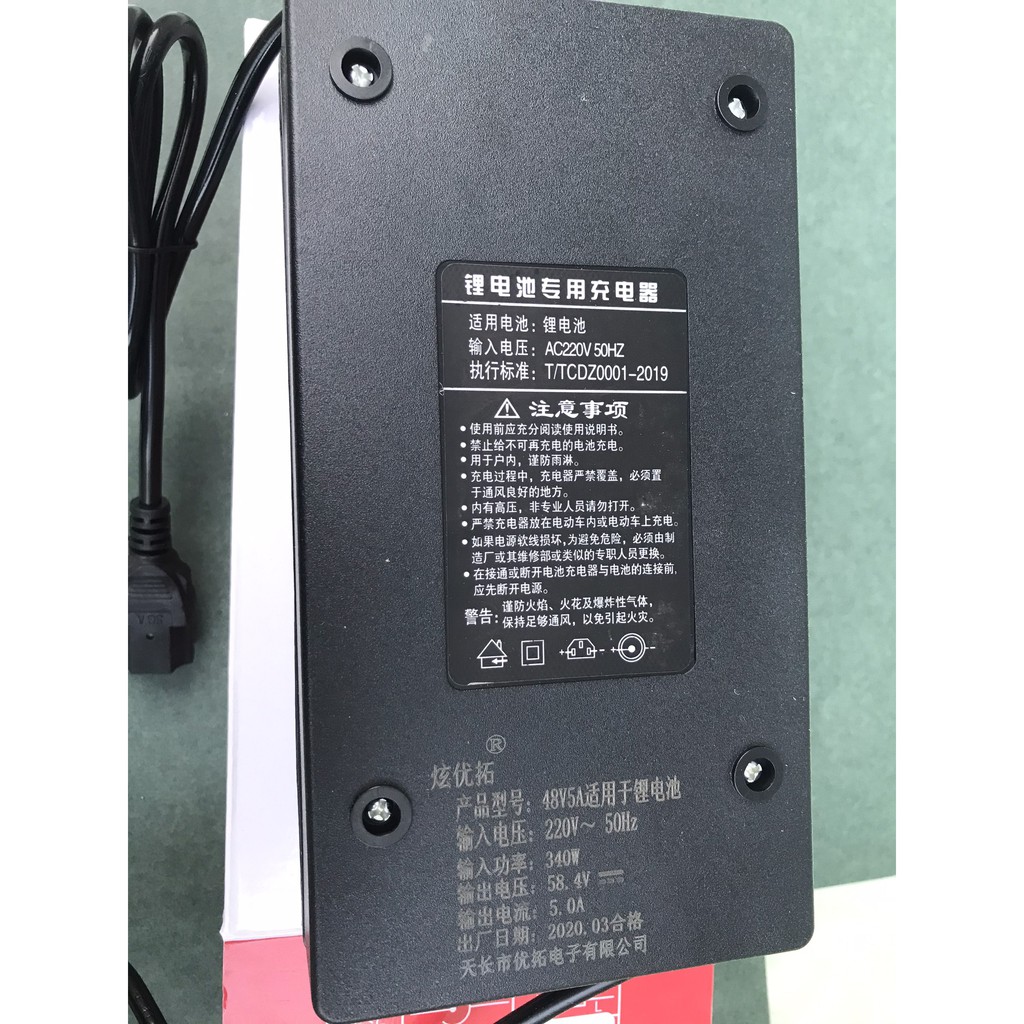 Sạc 48V/60V/72V tương ứng 58.4V/73V/87.6V, chuyên dùng cho sạc pin sắt 32650 mạch 16S. Có đèn báo đầy pin, rất thuận lợi để biết pin được sạc đầy.Thông số: