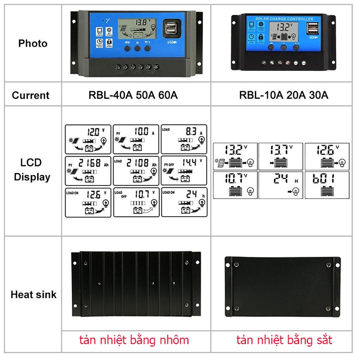 Giới thiệu Bộ sạc năng lượng mặt trời 60A tự nhận bình 12v và 24v- sạc năng lượng mặt trời
