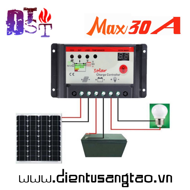 - Dòng nạp pin NLMT vào tối đa: 30A Max.