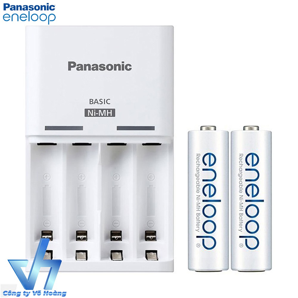 Bộ sạc pin Panasonic kèm 2 pin AA 2000mAh, tự động ngắt sạc (Trắng)