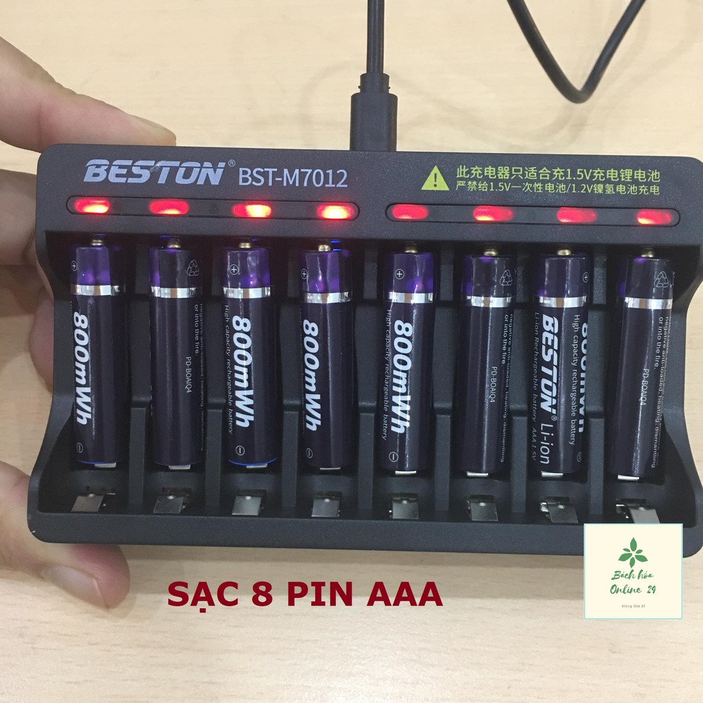 Bộ sạc pin tiểu 8 cổng 1.5V, pin sạc AA AAA BESTON 1.5V chính hãng pin lithium hàng cao cấp