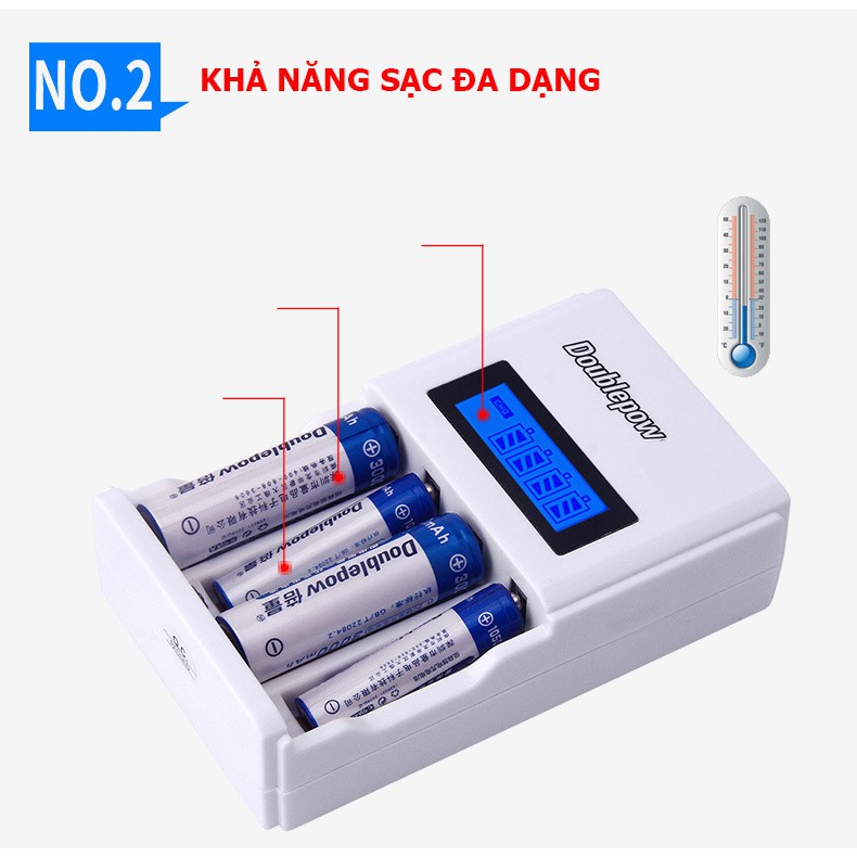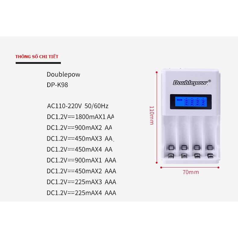 Tên sản phẩm: Bộ sạc pin tiểu (sạc pin AA, AAA) tốc độc cao Double pow, màn hình hiển LCD thông minhModel: DP-K98