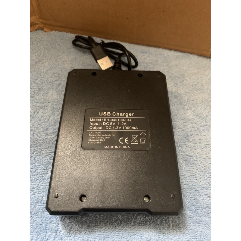 Có đèn báo đỏ khi pin được sạc, báo xanh khi pin đầyTham số đầu ra: DC 4.2V - 1A