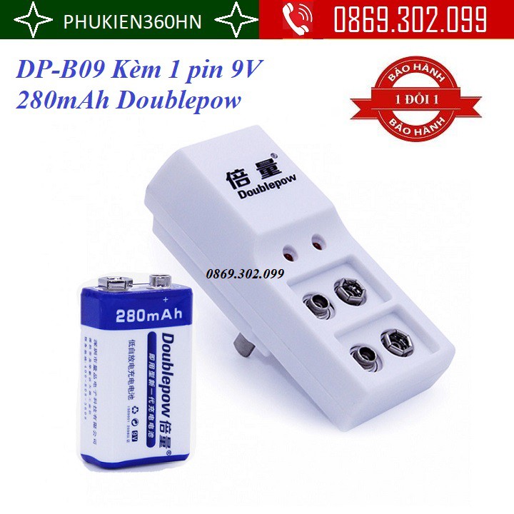 Bộ sạc pin vuông B09 Tặng 1 pin 9v 280mAh DoublepowThương hiệu: DoublePow