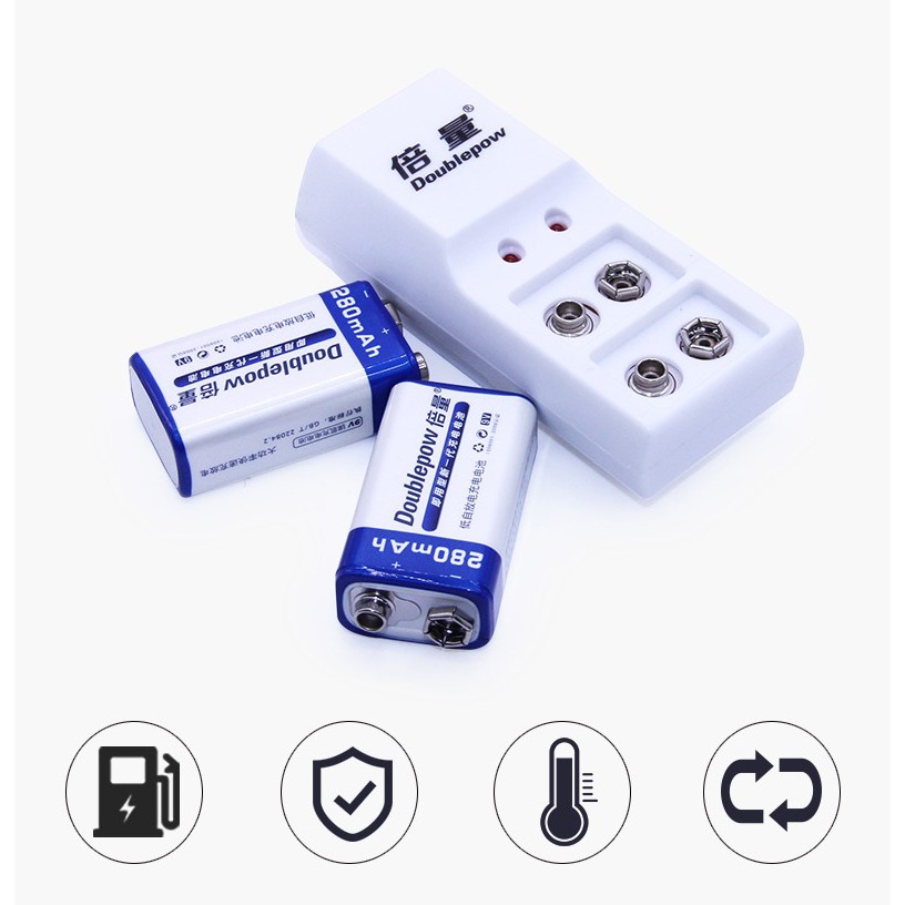Bộ sạc pin vuông DP-B09 Kèm 1 pin 9V 280mAh Doublepow AZONE