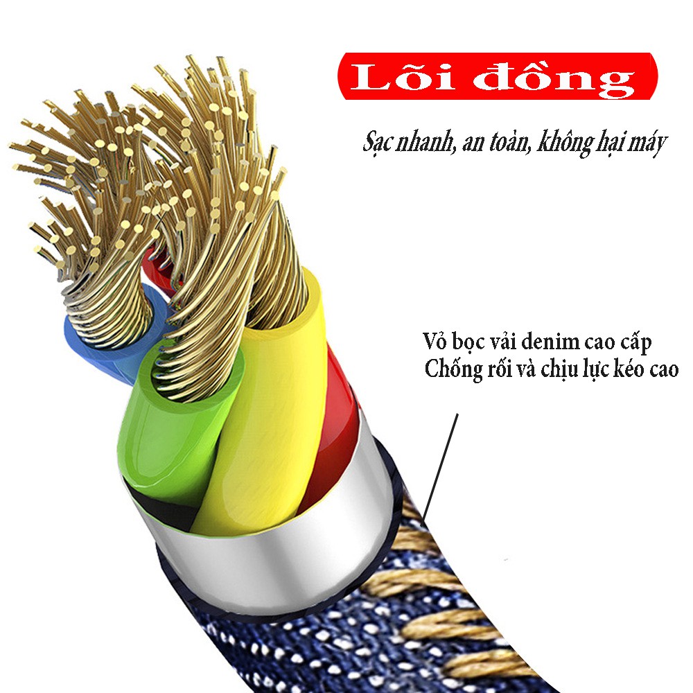 1.Cáp sạc được bọc vải Denim dai kết hợp đầu nối cố định TPE, bền và không bị đứt;