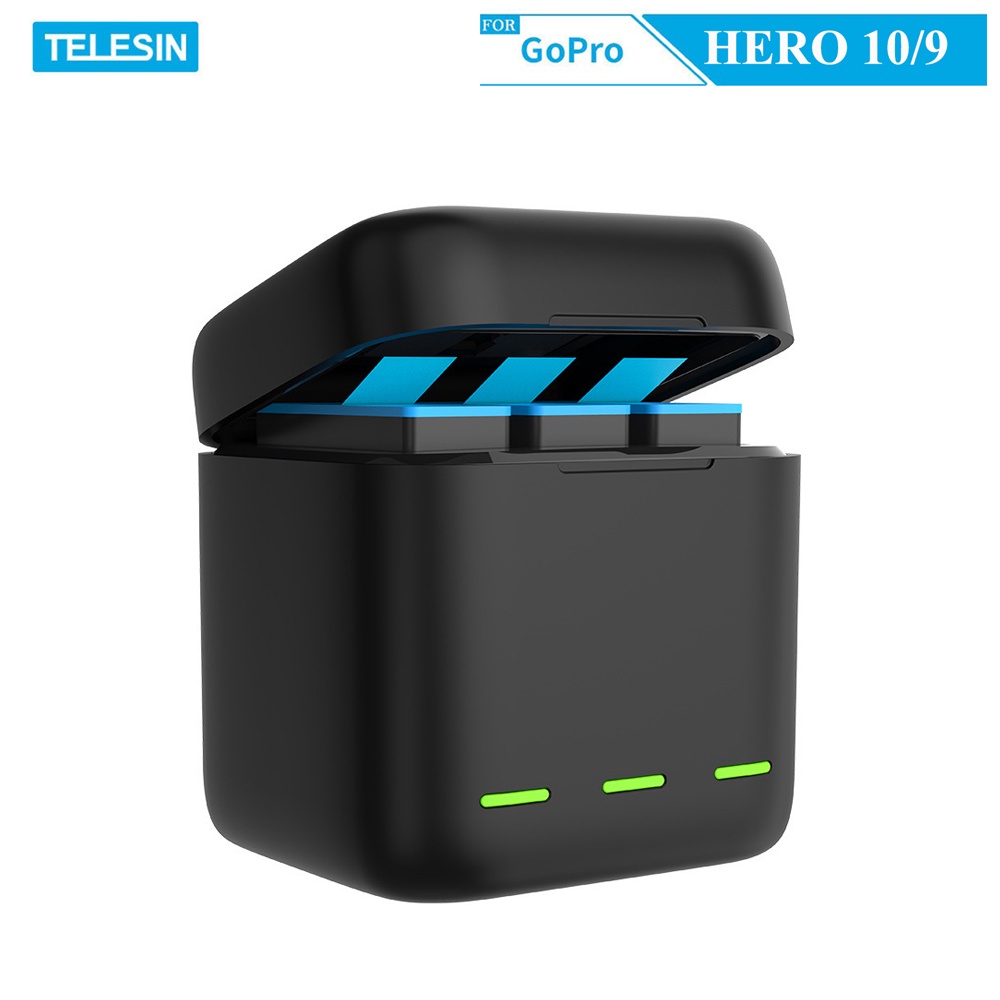 Cameras & Flycam > Phụ kiện máy ảnh > Bộ sạc pin || Sạc Telesin sạc 3 viên pin cùng lúc cho GoPro Hero 9, GoPro Hero 10 - (SG9-01)Còn hàng