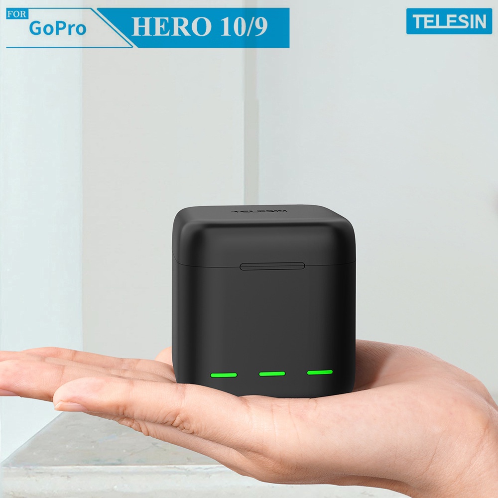 Cameras & Flycam > Phụ kiện máy ảnh > Bộ sạc pin || Sạc Telesin sạc 3 viên pin cùng lúc cho GoPro Hero 9, GoPro Hero 10 - (SG9-01)Còn hàng