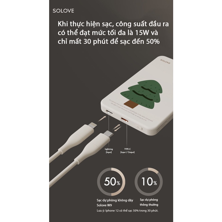 Giới thiệu [ Sạc Tích Hợp ] Sạc Dự Phòng Không Dây SOLOVE W9 - Hỗ Trợ Sạc Nhanh Type C 15W - 20W - Sạc Cùng Lúc Nhiều Thiết Bị
