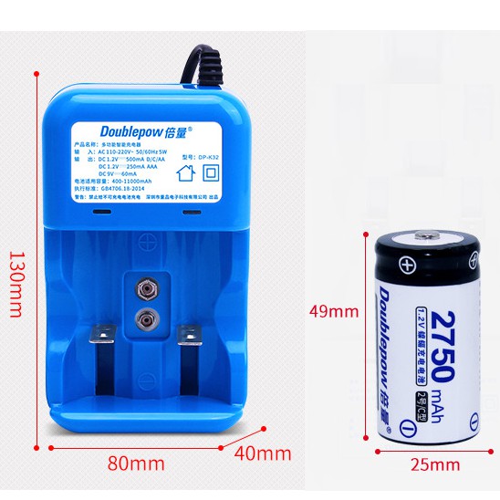 Bộ sạc Tự ngắt và 04 pin Trung Doublepow 2750mah