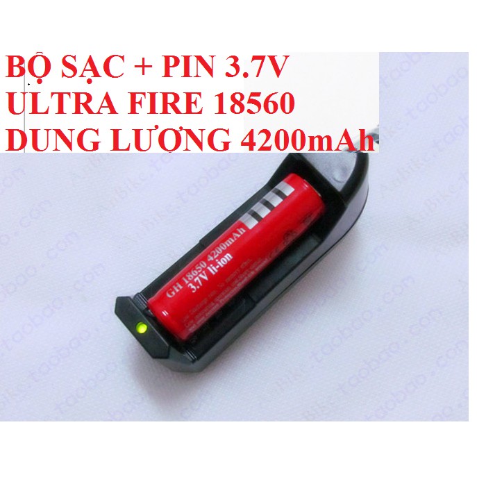 Bộ sạc và pin 3.7V 4200mAh Ultrafire 18650 dùng cho đèn pin (1pin và 1 sạc)Điện áp: 3,7V
