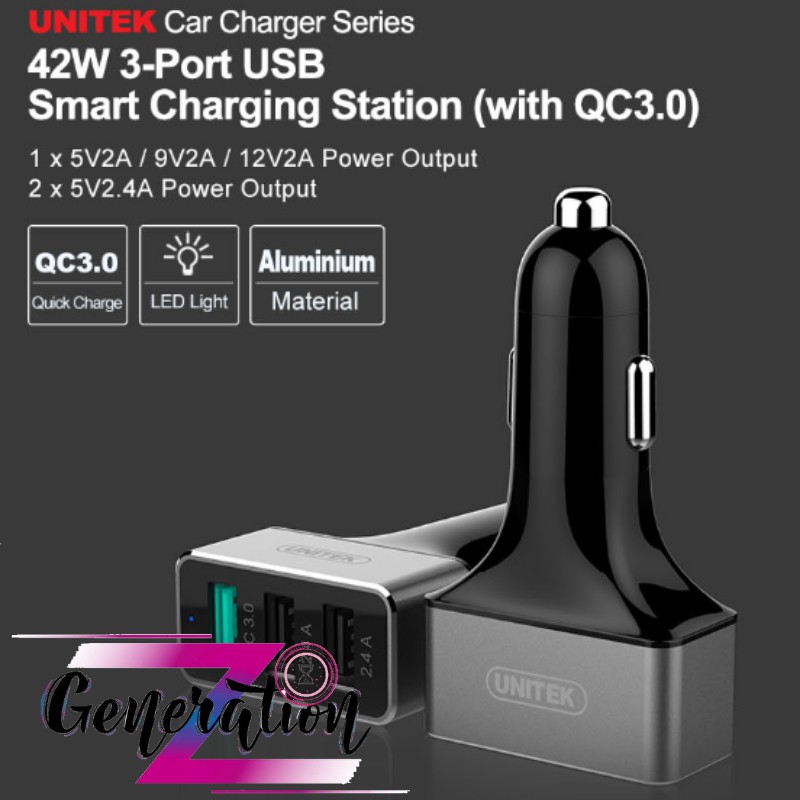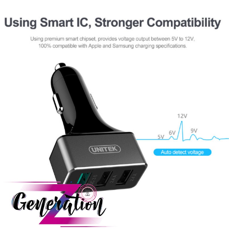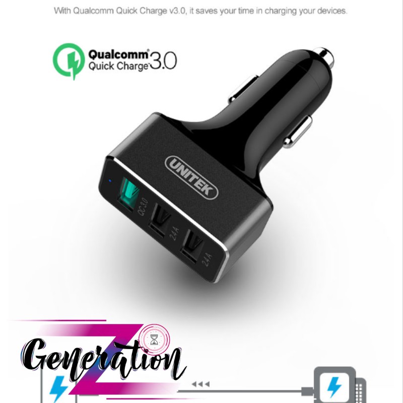 SẠC XE HƠI 42W 2 USB 2.4A + USB QC 3.0 UNITEK (Y-P 530C) Chính hãng UnitekVới vỏ nhôm, kiểu dáng thời trang, thanh lịch và bền.
