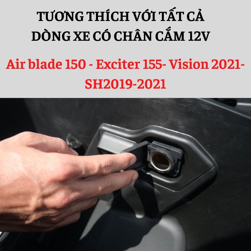 - Dòng Xe Máy Tương Thích: Airblade 150 - Exciter 155 - SH - Vision Và tất cả các dòng xe máy 2020 - 2021 có tích hợp chân cắm 12v trên xe