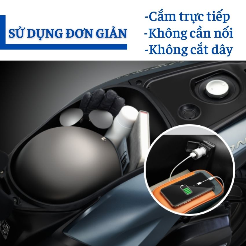 SỬ DỤNG ĐƠN GIẢN CẮM TRỰC TIẾP CHÂN NGUỒN 12V TÍCH HỢP TRÊN XE MÁY