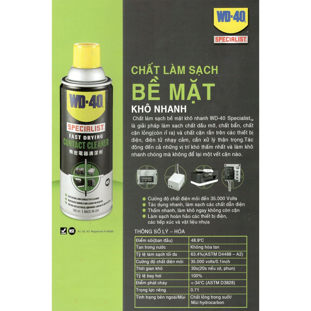 Làm sạch bề mặt khô nhanh, vệ sinh mạch điện, giắc, khớp nối điện WD-40 Specialist Fast Drying Contact Cleaner 360ml