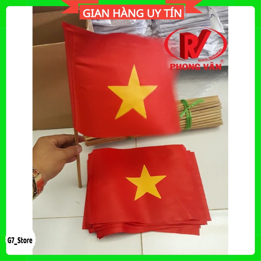 -Sản phẩm gồm 10 cờ vẫy tổ quốc cầm tay-Được sản xuất từ vải satanh bóng và bền