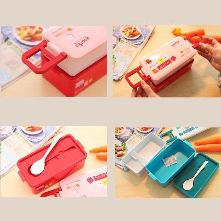 Hộp cơm Bento YooLee 900ml có muỗng, có vách chia ngăn thức ăn tiện lợi, nhỏ gọn, dễ mang theo đến văn phòng, đi picnic, cho bé đi học– Kích thước: 16cm x 8.3cm x 10cm
