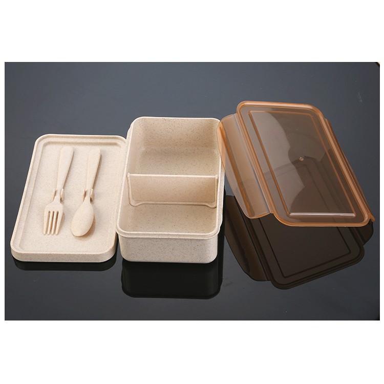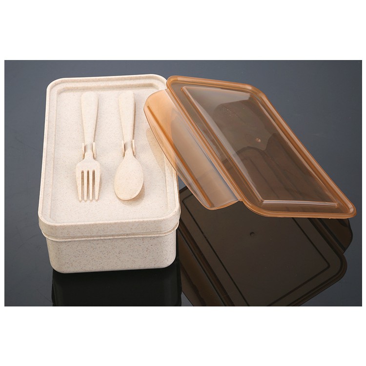 [SALE 11.11] HCM - Hộp cơm lúa mì dày cao cấp 1.1L (kèm bộ muỗng, nĩa)