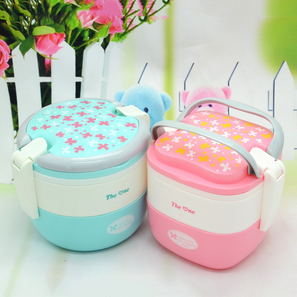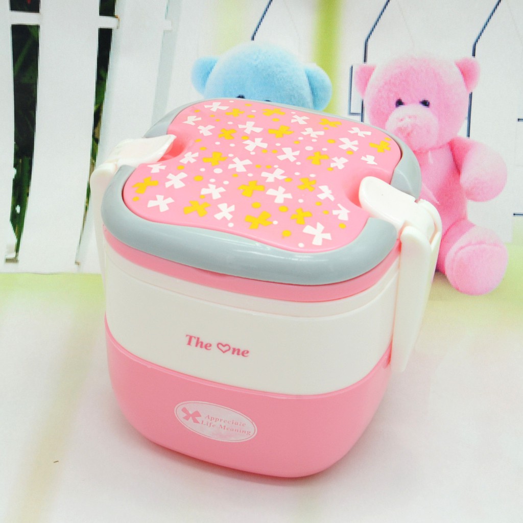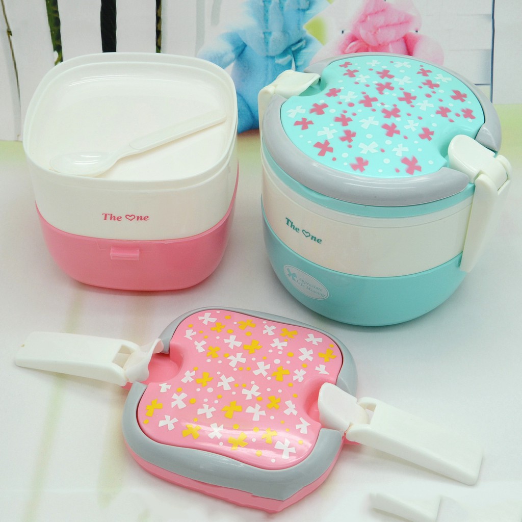 Giới thiệu [SALE 11.11] HCM - Hộp cơm The One kiểu Nhật họa tiết bông 2 khay dễ thương (kèm muỗng)