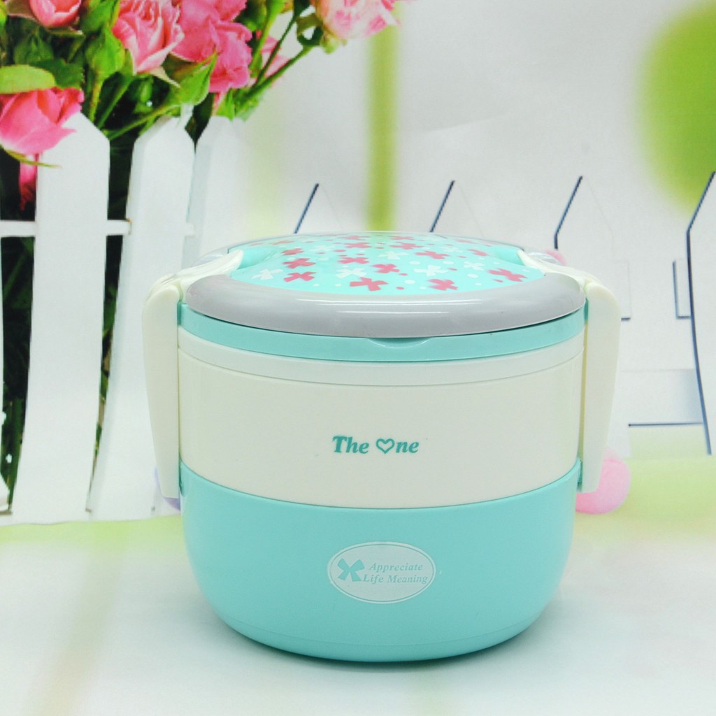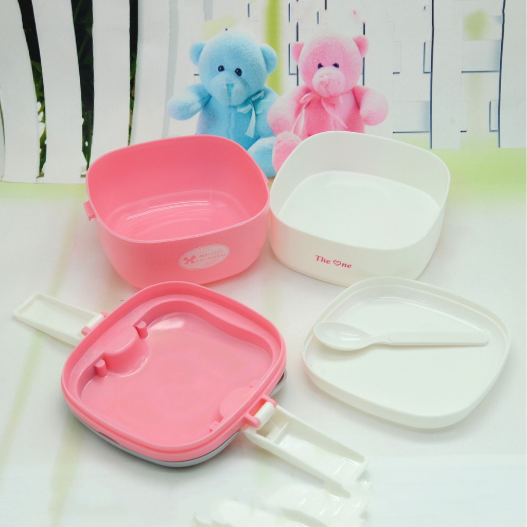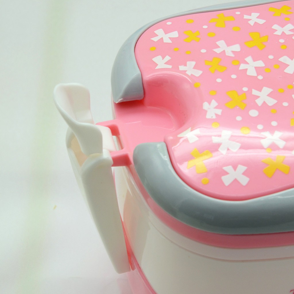 Giới thiệu [SALE 11.11] HCM - Hộp cơm The One kiểu Nhật họa tiết bông 2 khay dễ thương (kèm muỗng)