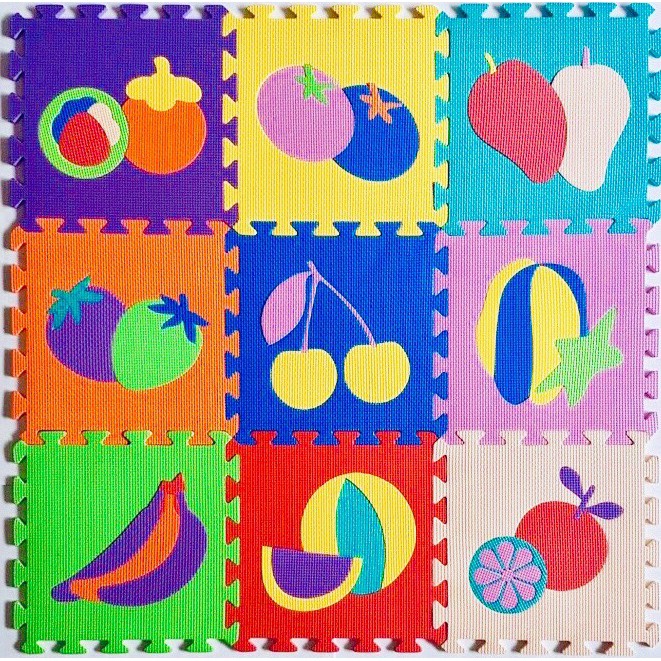 *** Mỗi miếng xốp in hình 1 động vật dễ thương như: vịt, cá sấu, ếch... và hình các loại trái cây khác nhau với màu sắc khác nhau cho các bé vừa chơi vừa học cách nhận biết màu sắc và hình dạng