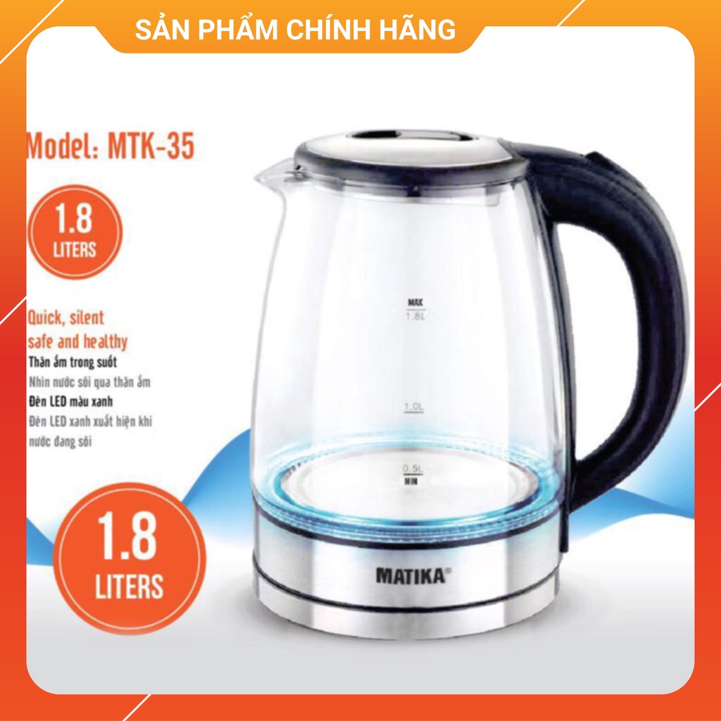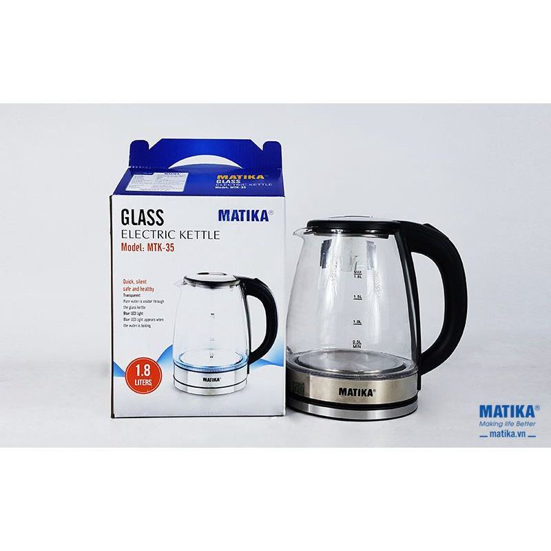 ✅Ấm siêu tốc thủy tinh Matika MTK-35 hoạt động với công suất 1800W giúp đun nước sôi nhanh chóng và tiết kiệm hiệu quả.