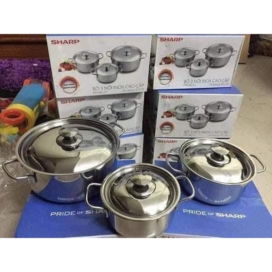 Nhà cửa & Đời sống > Dụng cụ nhà bếp > Nồi || [SALE] Bộ 3 nồi inox SHARP nắp inox 24cm 20cm 16cm dùng dược bếp từ và mọi loại bếPCòn hàng