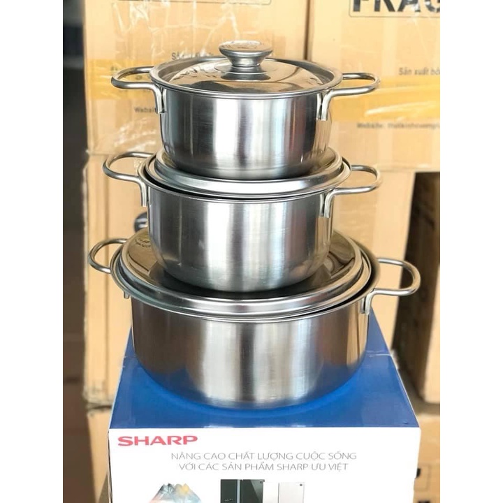 [SALE] Bộ 3 nồi inox SHARP nắp inox 24cm 20cm 16cm dùng dược bếp từ và mọi loại bếP