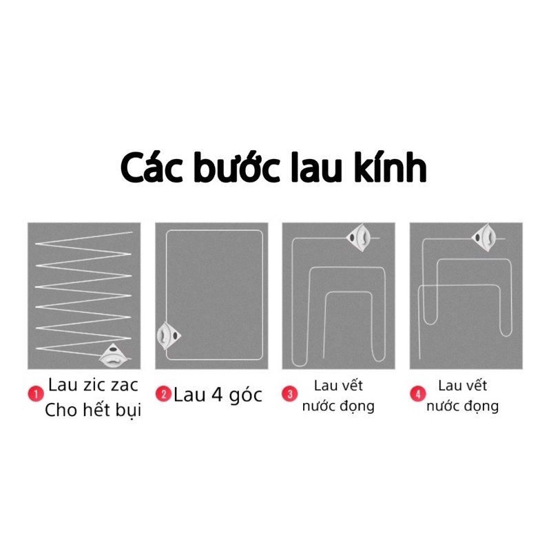 - Xịt nước lau kính vào miếng mút đen (hình tam giác) trên bề mặt 2 miếng lau hoặc xịt trực tiếp lên bề mặt kính (phương án xịt trực tiếp lên bề mặt kính là tối ưu nhất, giúp 2 miếng lau di chuyển trơn và dễ dàng hơn, cần có bình xịt)