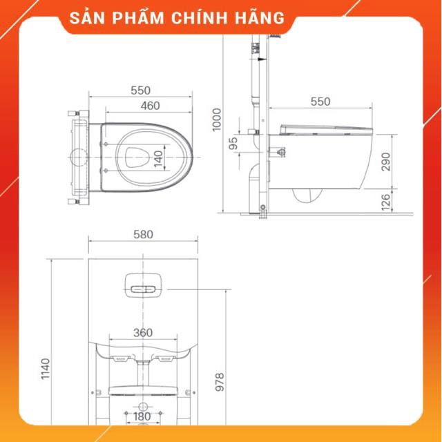 Bàn cầu treo tường thoát ngang, két nước âm tường