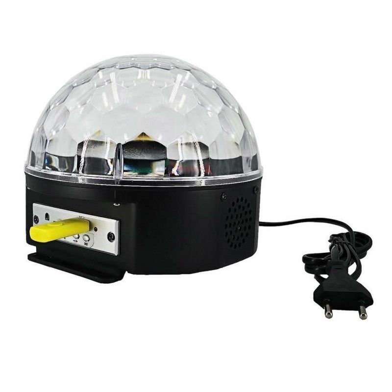 Xuất xứ : Trung QuốcHình dạng giống quả cầu bán nguyệt. Là một sản phẩm độc đáo 2 trong một: Vừa là đèn led trình chiếu đủ màu sắc, vừa là dàn âm thanh sôi động có điều khiển từ xa.Với thiết kế hình cầu nhỏ xinh, ánh sáng phát ra đủ màu sắc, đèn cầu led 7 màu sẽ làm bạn thật sự ngạc nhiên vì có thể tạo ra một không gian không khác gì quán bar hay như một quán karaoke thu nhỏ.