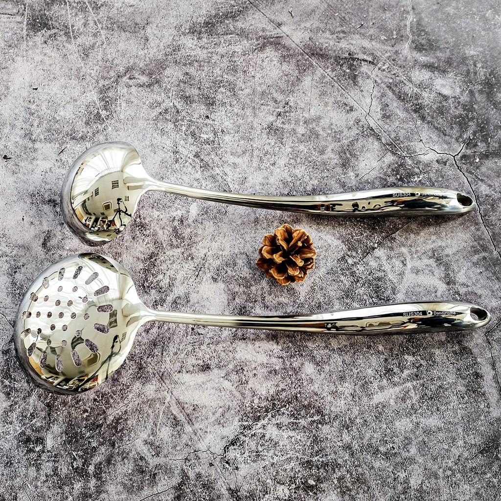 [Sale] Combo muỗng dài và muỗng thủng ăn lẩu loại lớn inox 304 DandiHome cao cấp, sáng bóng