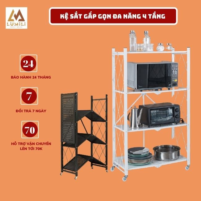 Nhà cửa & Đời sống > Nội thất > Kệ & Giá || [Sale đầu năm] Kệ sắt đa năng 4 tầng chất liệu thép mạ sơn tĩnh điện có bánh xe dễ dàng di chuyển và lắp đặtCòn hàng