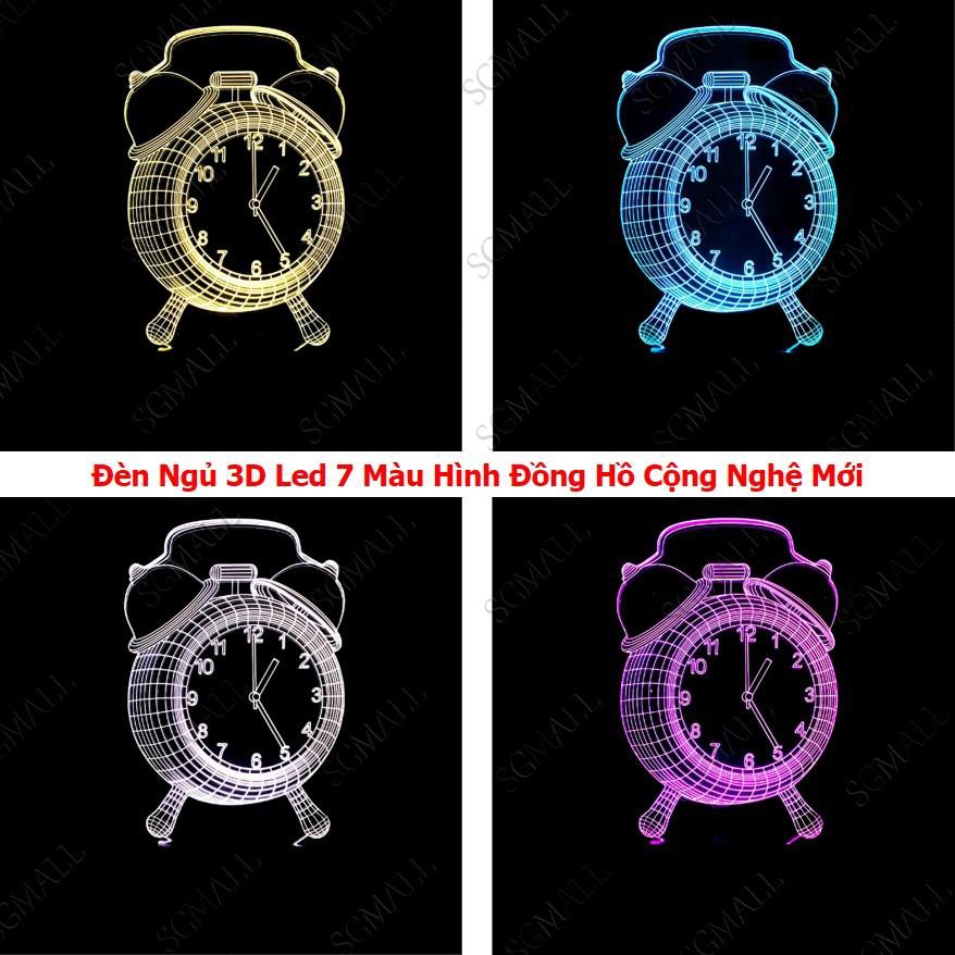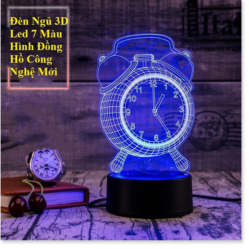 Sale Đèn ngủ 3d,Đèn Ngủ 3D Led 7 Màu Hình Đồng Hồ Công Nghệ Mới - Bảo hành 1 đổi 1