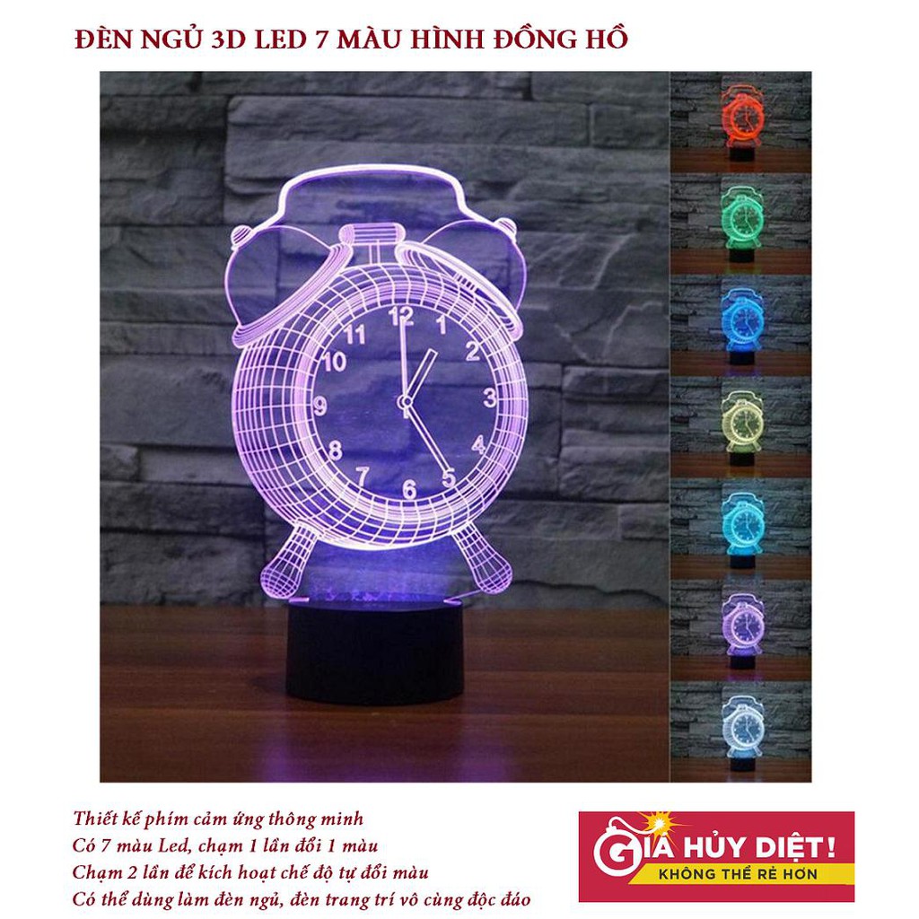 Điện Thoại & Phụ Kiện > Phụ kiện > Đèn USB & Đèn điện thoại || Sale Đèn ngủ 3d,Đèn Ngủ 3D Led 7 Màu Hình Đồng Hồ Công Nghệ Mới - Bảo hành 1 đổi 1Còn hàng