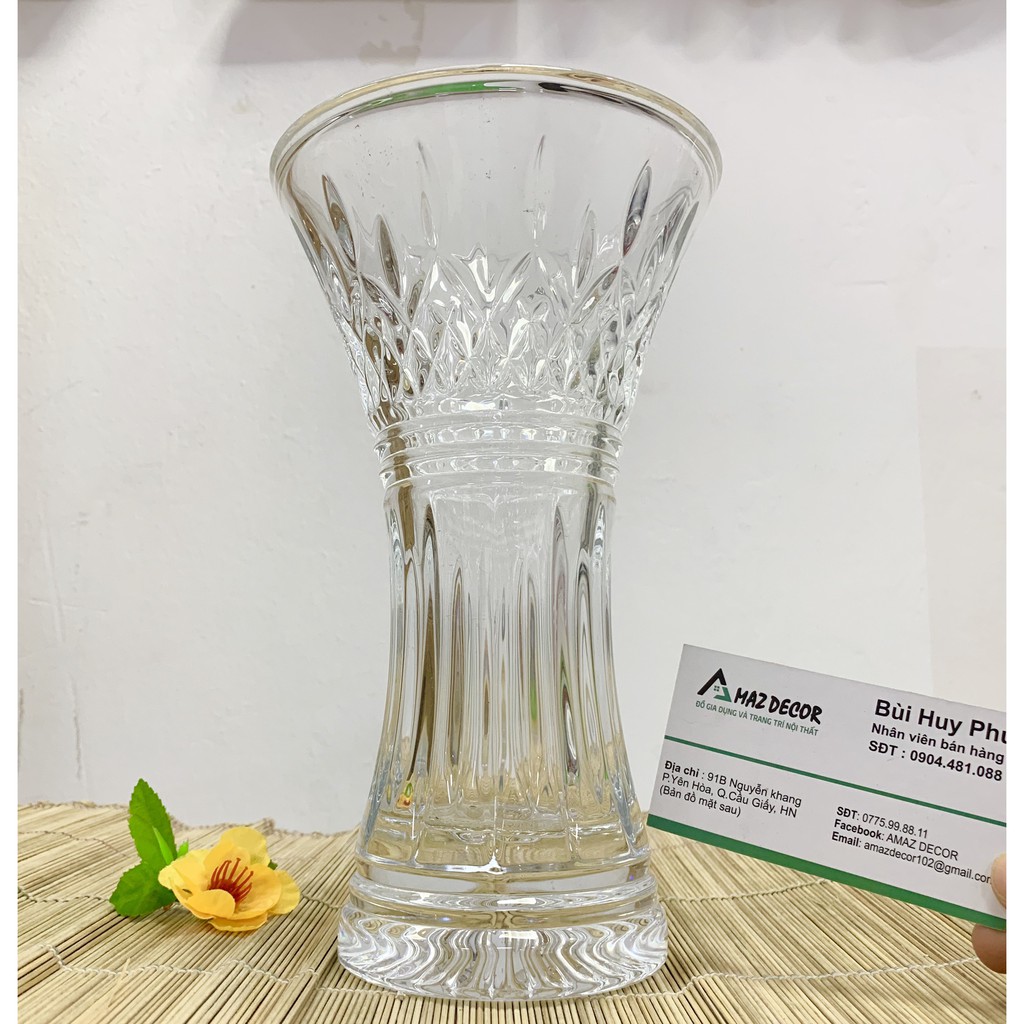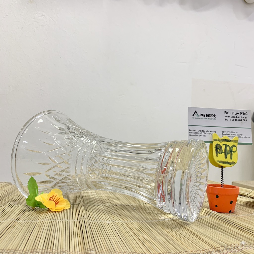 BÌNH BÔNG LỌ HOA THỦY TINH TRANG TRÍ :-Chiều cao 24cm; đường kính miệng 14cm; đường kính đáy 9cm.