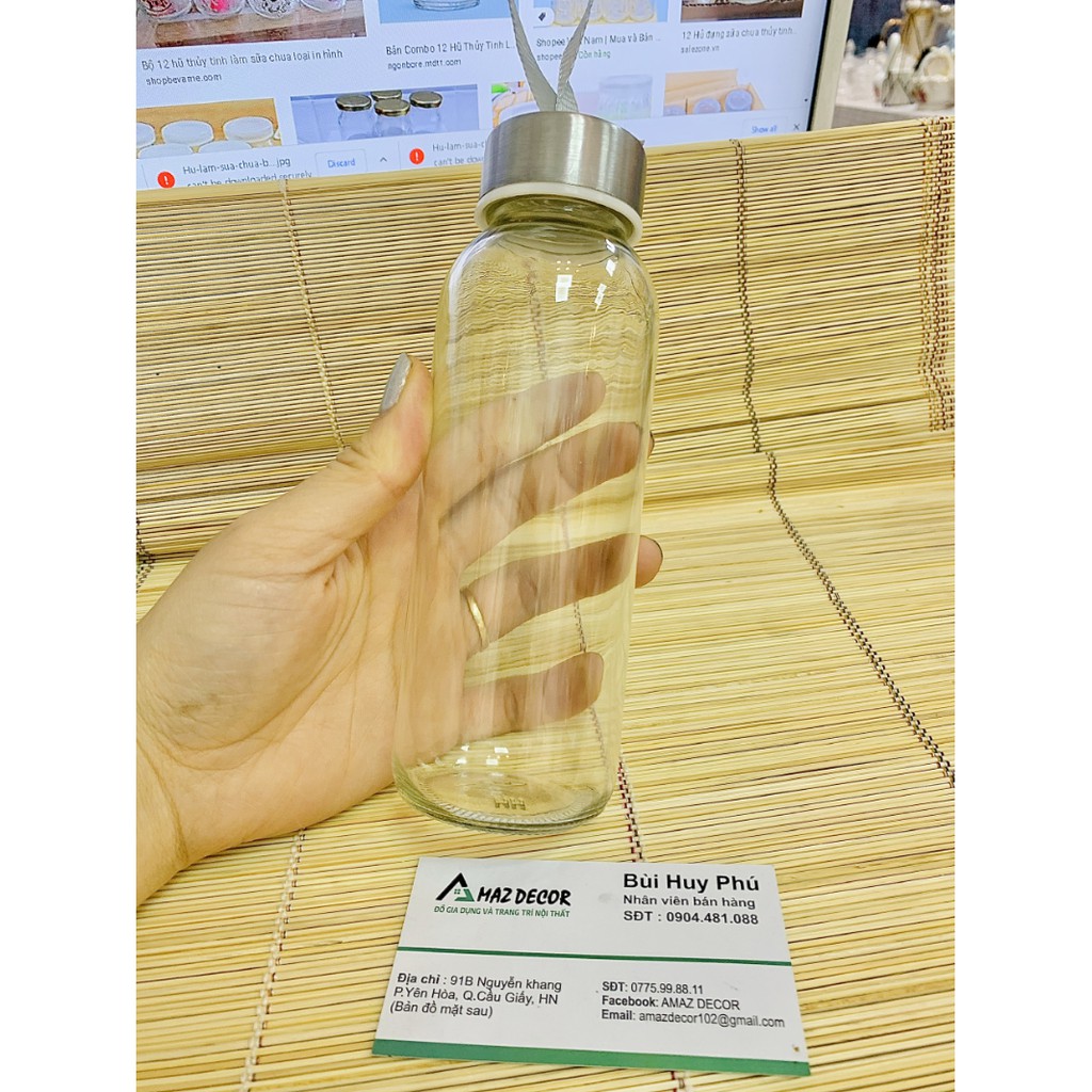 Với 2 dung tích 300ml đến 500ml chiếc chai thủy tinh này vừa xinh để bạn mang theo người, cài vào balo khi tập thể dục, thể thao, đi làm công sở, đi học hay đi chơi. Các cửa hàng cũng có thể sử dụng để làm sữa chua uống, đựng trà sữa, sinh tố cho khách vừa sạch sẽ lại an toàn cho khách yêu ạ.