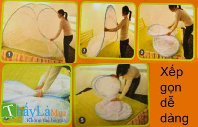 + Mùng màn chụp tự bung thiết kế thông minh và tiện lợi, dễ dàng sử dụng chỉ cần một thao tác đơn giản là chiếc mùng đã được bung ra. Khi không sử dụng bạn có thể thu lại gọn gàng, không chiếm dụng không gian, tiết kiệm diện tích.