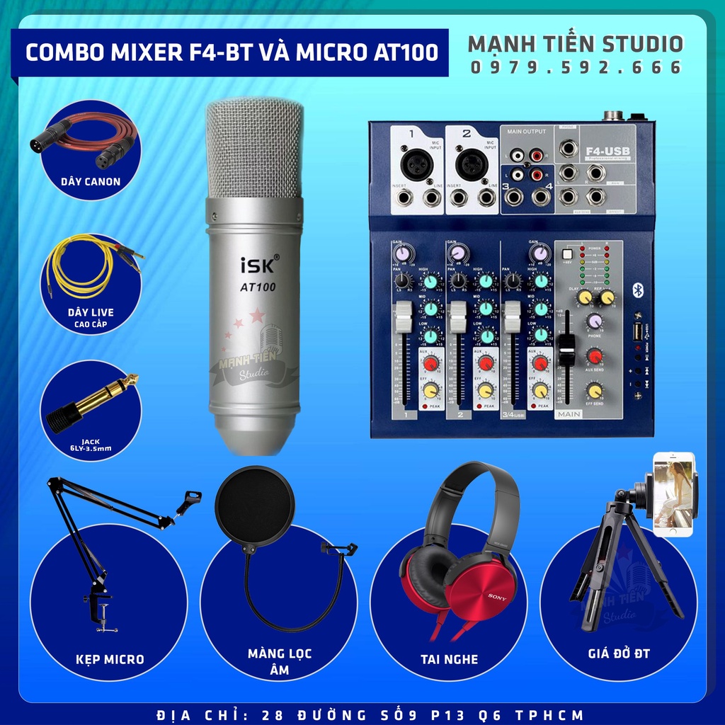 Giới thiệu [Sale Giá Sốc] Combo Micro AT100 + Bàn Mixer F4 - livetream bán hàng fb, shoppe, hát karaoke, thu âm chuyên nghiệp