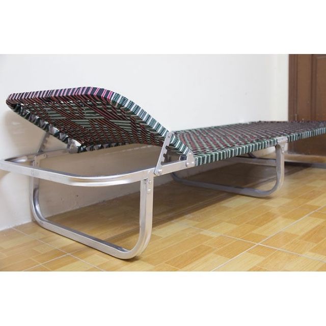 Vật liệu: Giường gấp, giường xếp có khung được làm bằng nhôm vuông, sơn nhũ, dây đai là sợi tổng hợp 20mm.