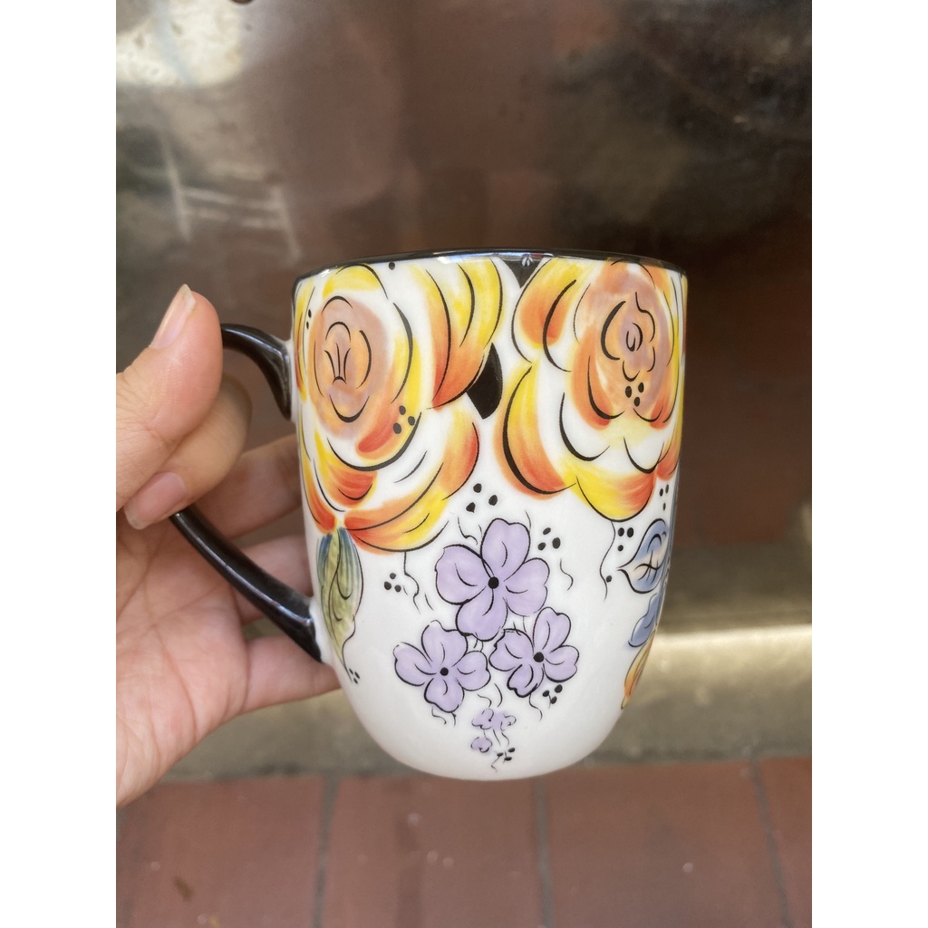 Cốc vẽ tay của hãng gốm Tây Ban Nha dưới bàn tay của nghệ nhân làng gốm Giang Tây Trung Quốc, sản phẩm được xuất các nước Châu Âu.Dùng được lò vi sóng và máy rửa bát. Rất xinh xắn và lạ mắt