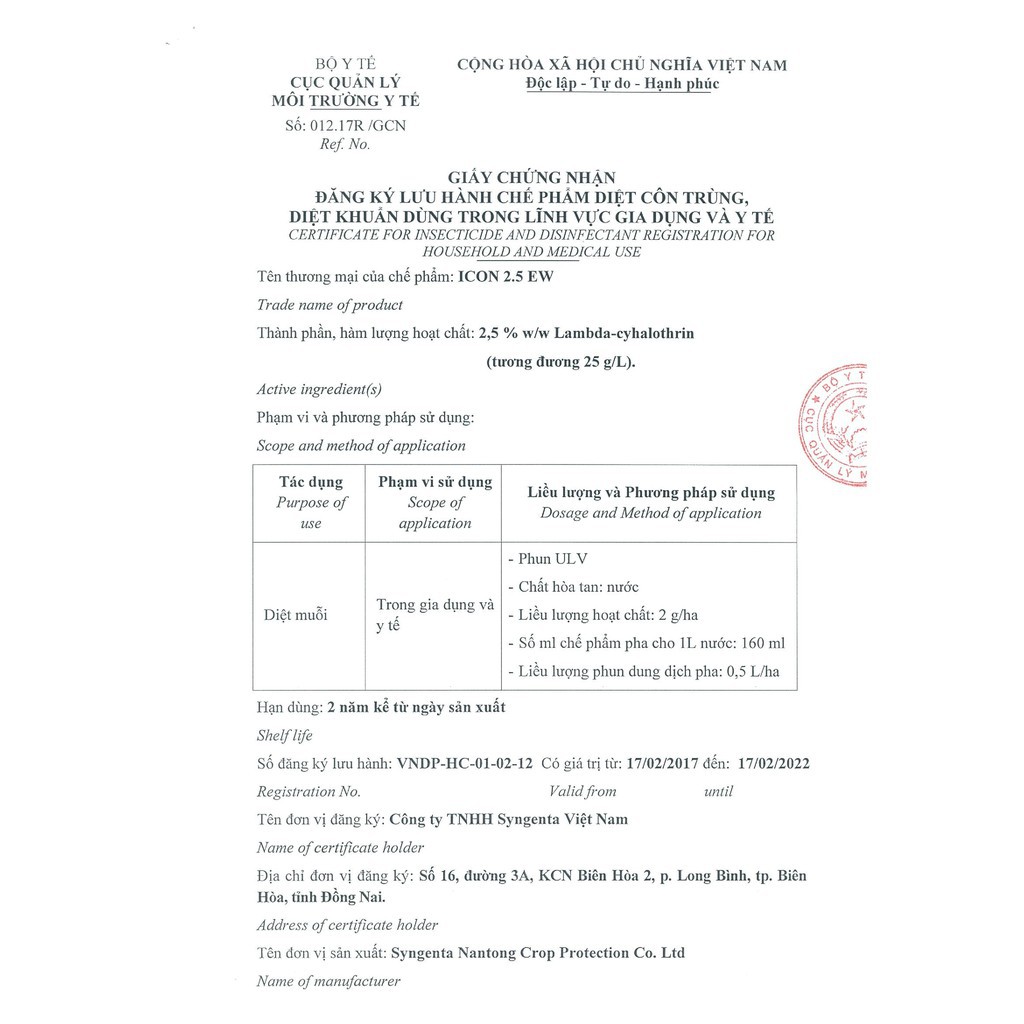 Sale (hot) - Thuốc diệt bọ xít muỗi trên điều, muỗi hành trên lúa Icon 2.5 EW 250ml ( Hàng của Sygenta) siêu tốt.