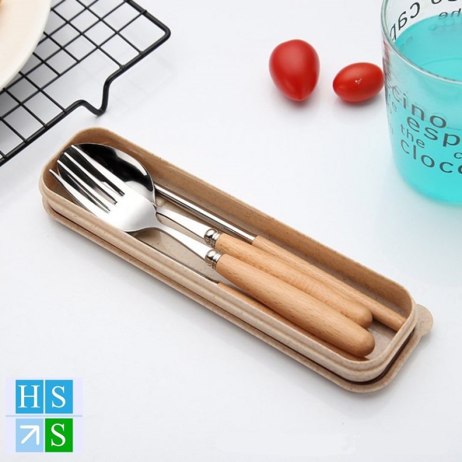 [Sale hủy diệt] BỘ THÌA ĐŨA DĨA INOX CÁN GỖ LÚA MẠCH