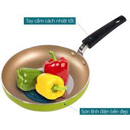 Bề mặt chảo có màu xanh tươi tắn được sơn tĩnh điện cao cấp, chịu nhiệt tốt, mang đến bộ bền cao và khả năng chống xước hiệu quả giúp chảo nhìn như mới sau thời gian dài sử dụng.