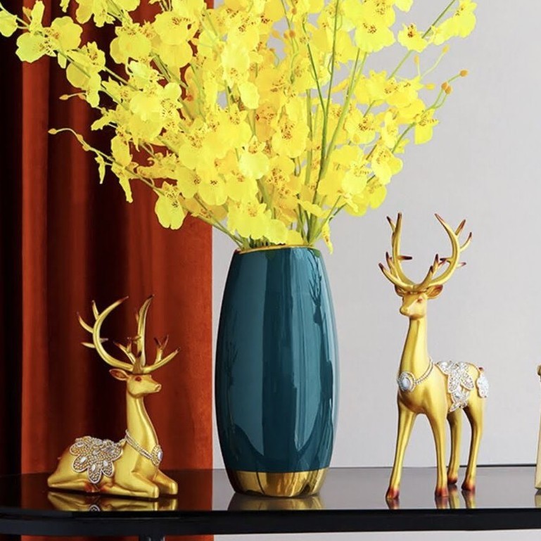 Nhà cửa & Đời sống > Trang trí nhà cửa > Bình trang trí || [Sale Hủy Diệt] Lọ hoa, bình hoa gốm sứ cao cấp miệng sơn mạ vàng, lọ hoa trang trí nội thất Nordic VintageCòn hàng