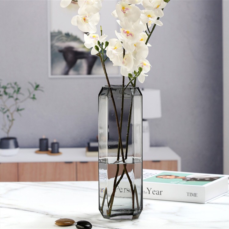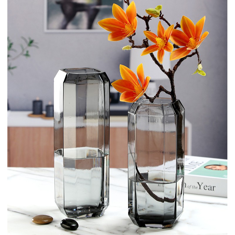 [Sale Huỷ Diệt] Lọ hoa, bình hoa thủy tinh trang trí nội thất màu xám đen cao cấp