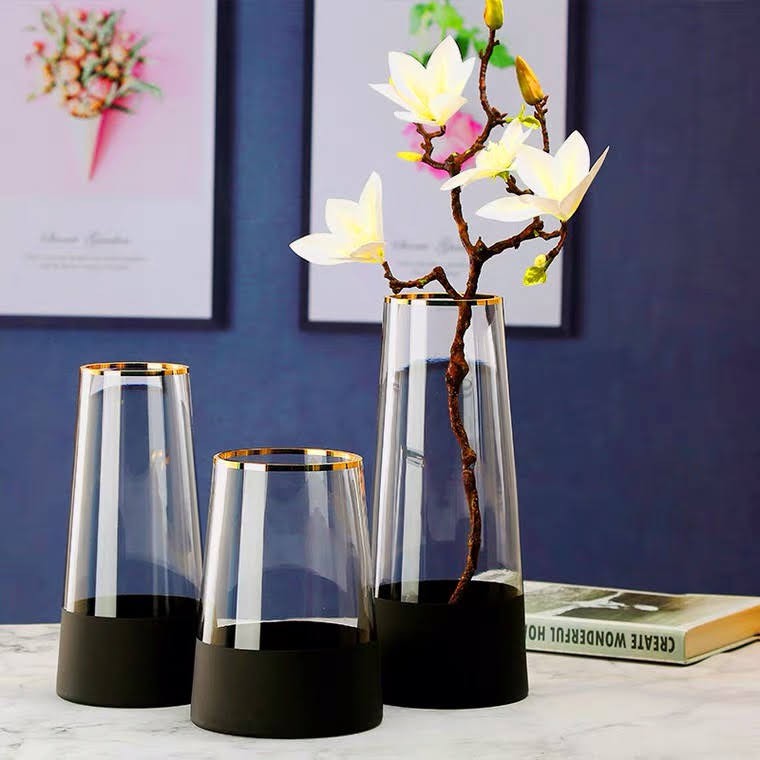 Nhà cửa & Đời sống > Trang trí nhà cửa > Bình trang trí || [Sale Hủy Diệt Mẫu Mới] Lọ hoa, bình hoa thủy tinh cao cấp miệng sơn mạ vàng - Phong cách Bắc Âu [Giá sỉ]Còn hàng