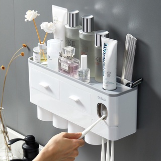 👉 Sản phẩm gồm: 1 Kệ nhà tắm tích hợp chức năng lấy kem tự động + Cốc hút từ tính + miếng dán tường