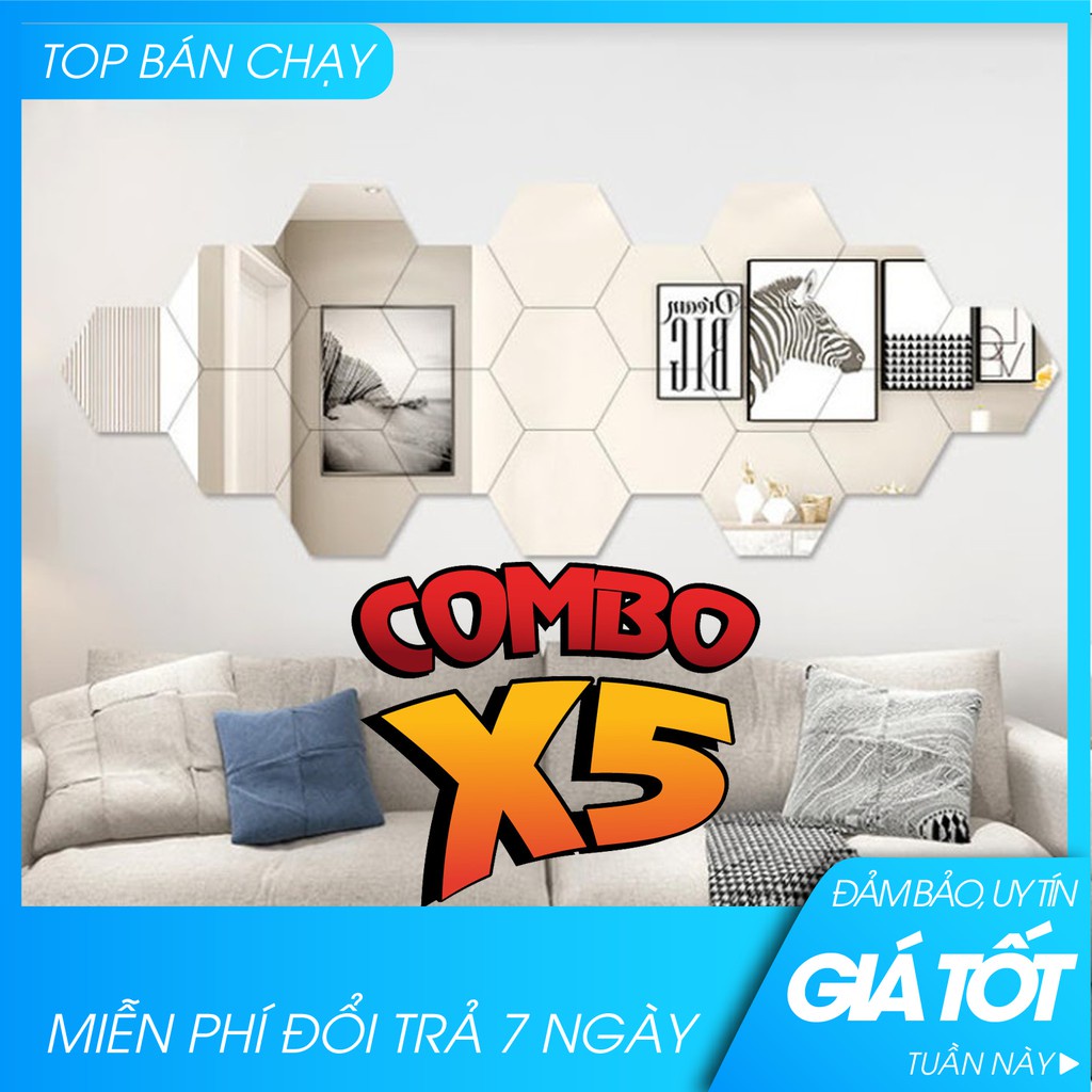 Giới thiệu [ SALE KỊCH SÀN] Set 5 Bộ 12 miếng gương dán tường 3D hình lục giác 11x11